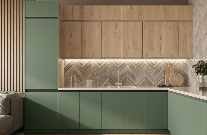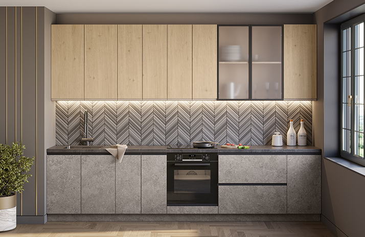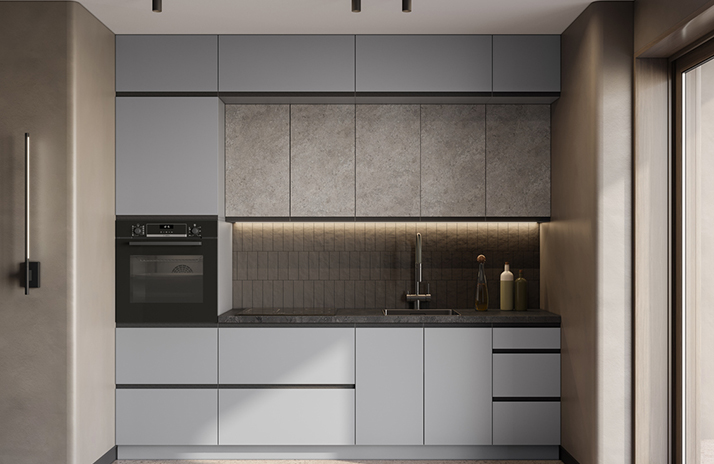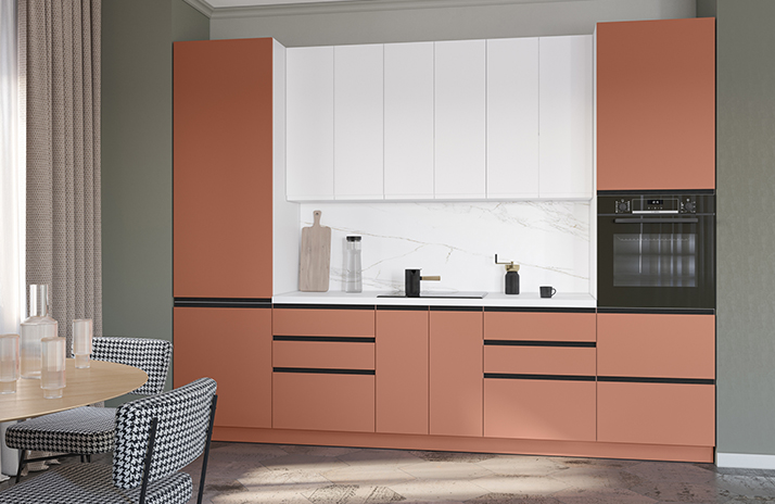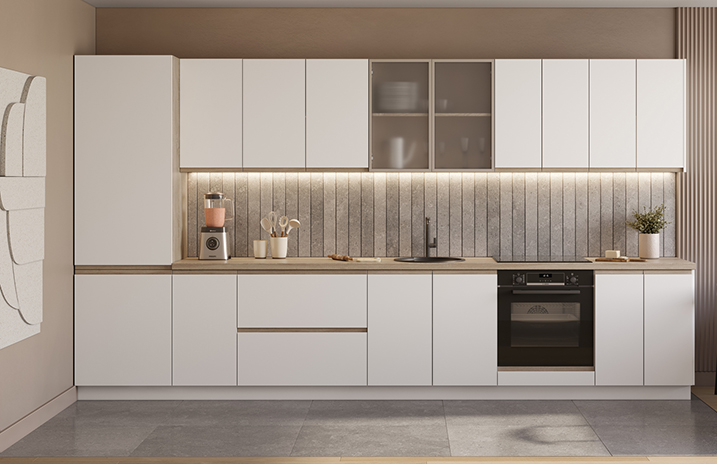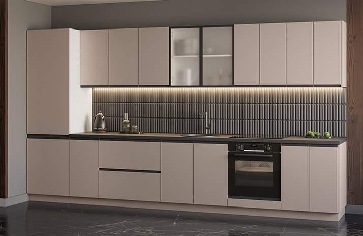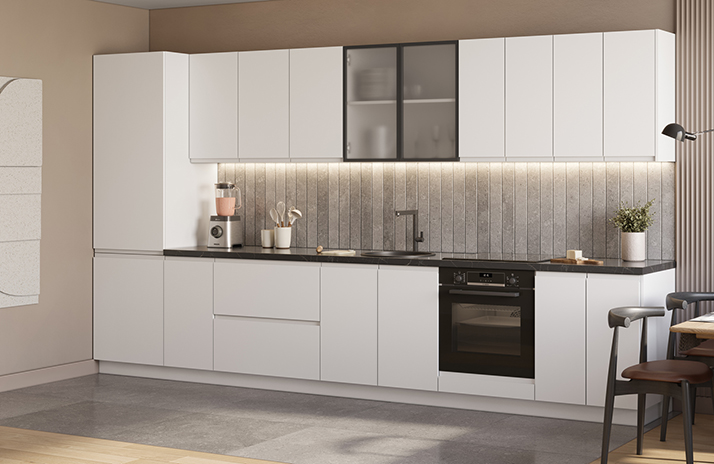 Moguće je opremiti donje ormariće s regulirajućom nogom u boji aluminijuma umjesto standardnog postolja.